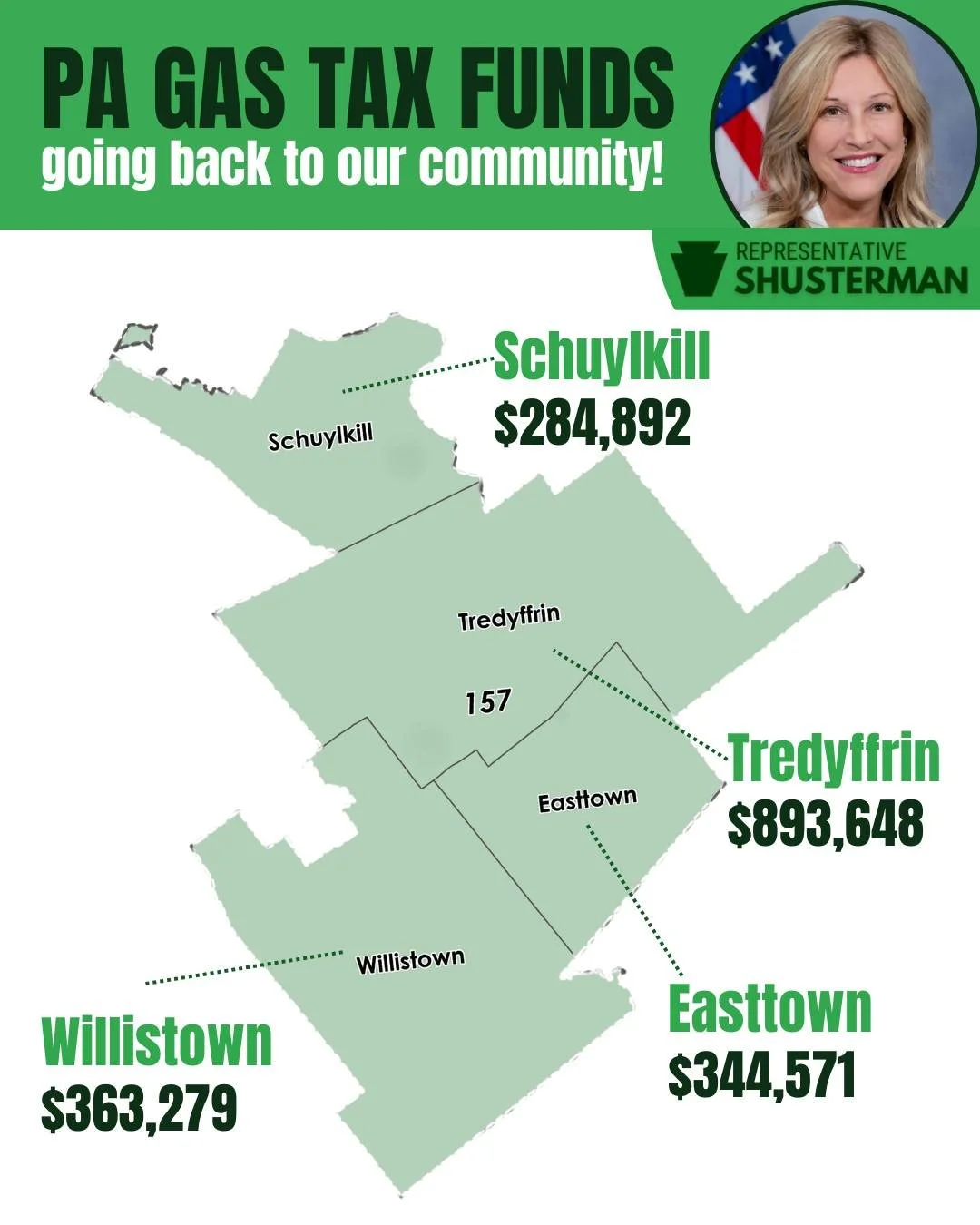 This money comes from the PA Gas Tax and helps our municipalities maintain their roads and bridges. I'm happy to see our tax dollars reinvested into our community!